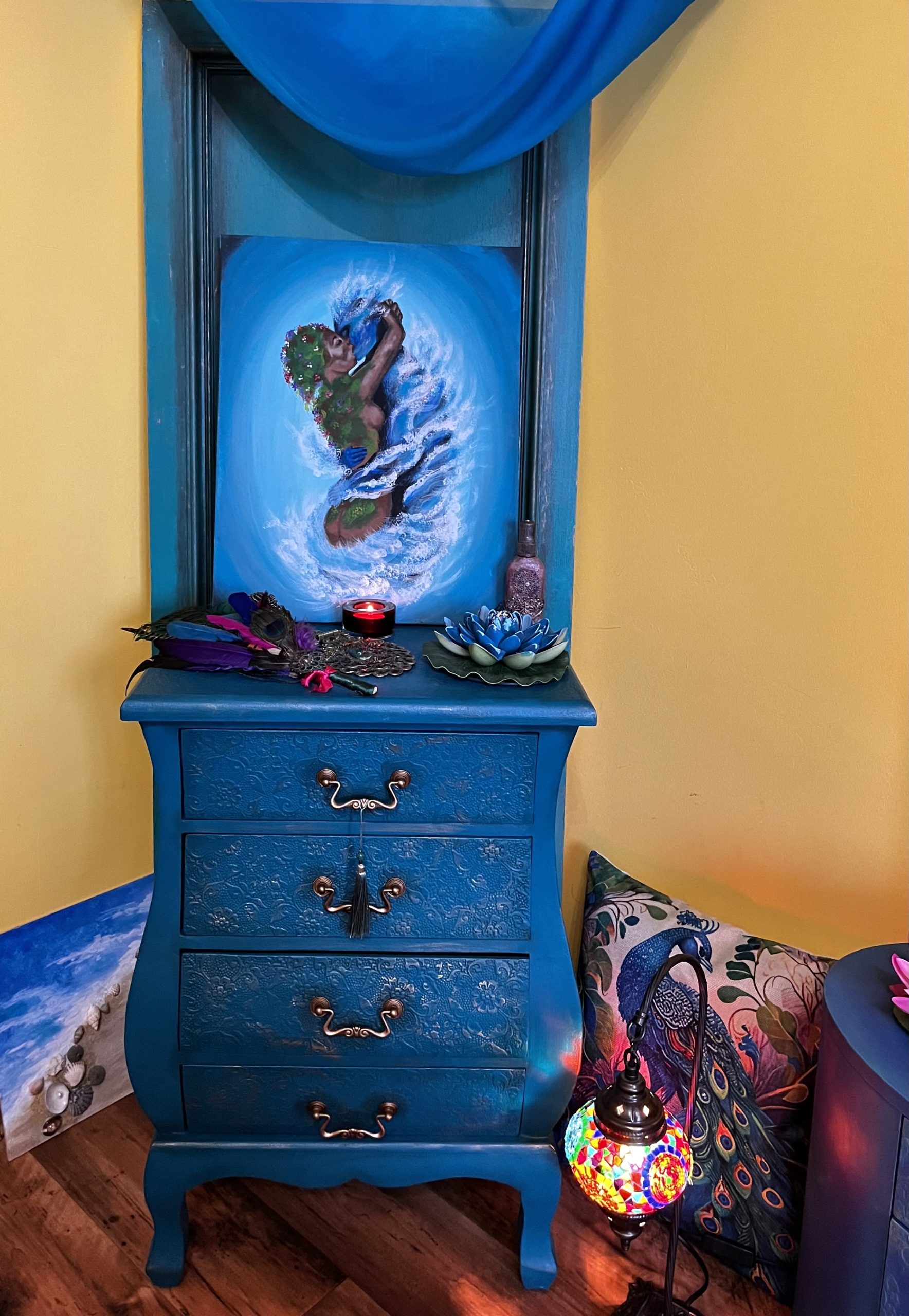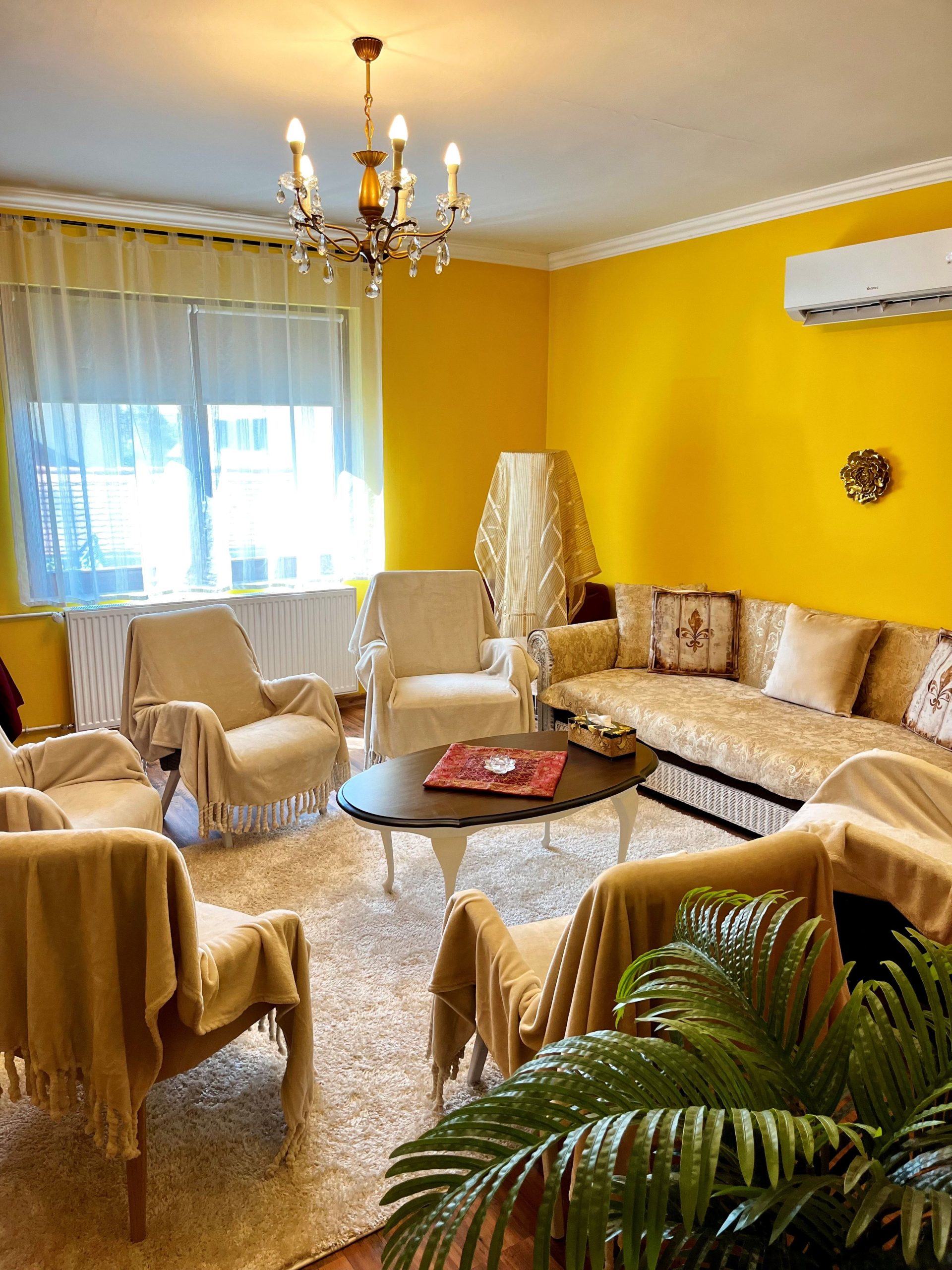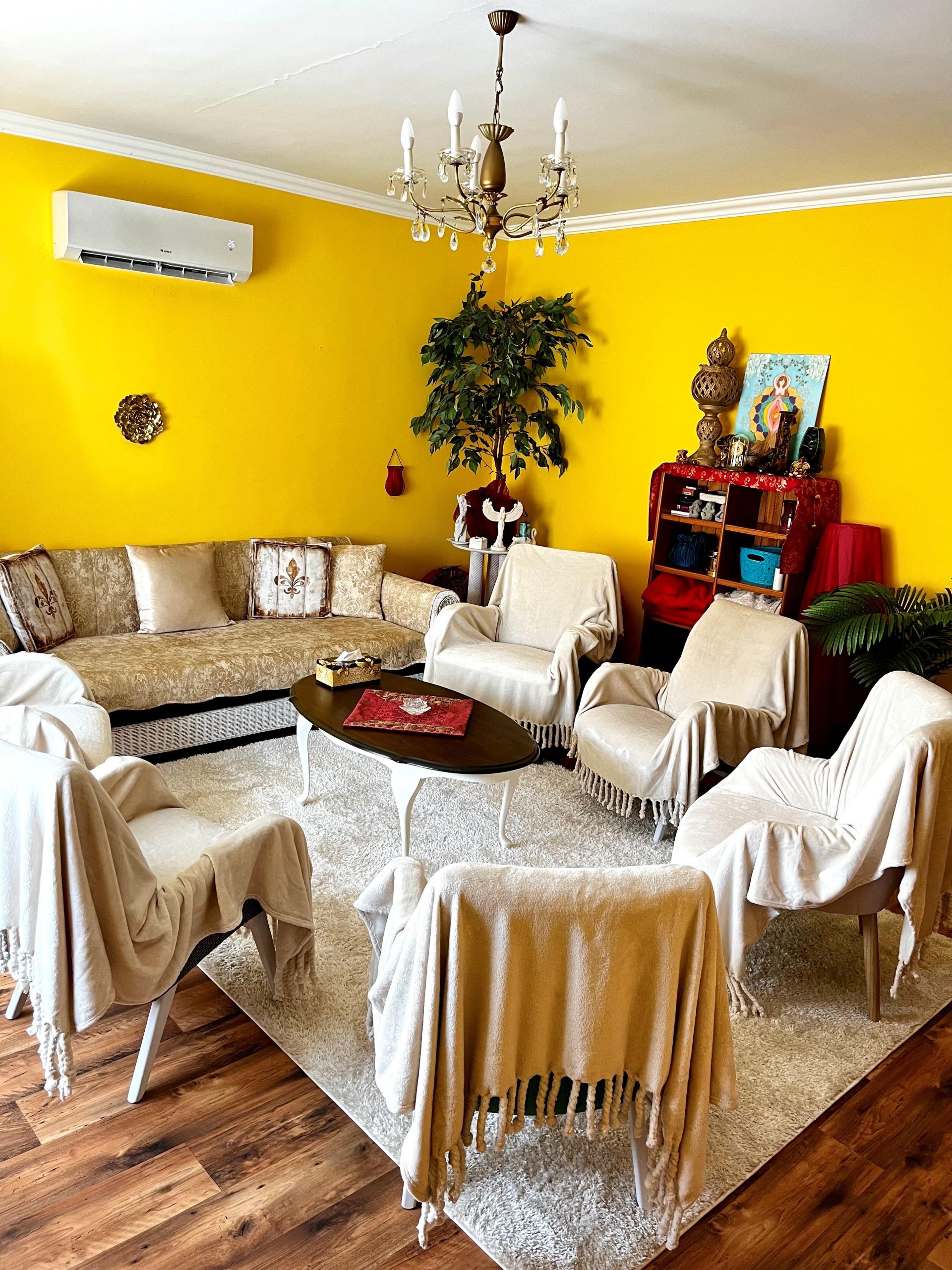 Az emeleten található 28 m2-es klimatizált szoba, 6 fotellel, kanapéval, jógapárnákkal, kiscsoportos tevékenységekre alkalmas, 10 főig (női körök, tanfolyamok, kiscsoportos előadások, párterápiák…)